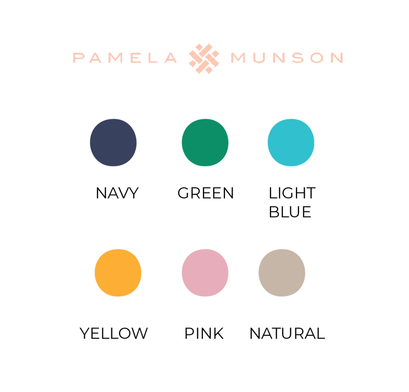 If you would like a different monogram color or placement from what is pictured, please email us directly at hello@pamelamunson.com